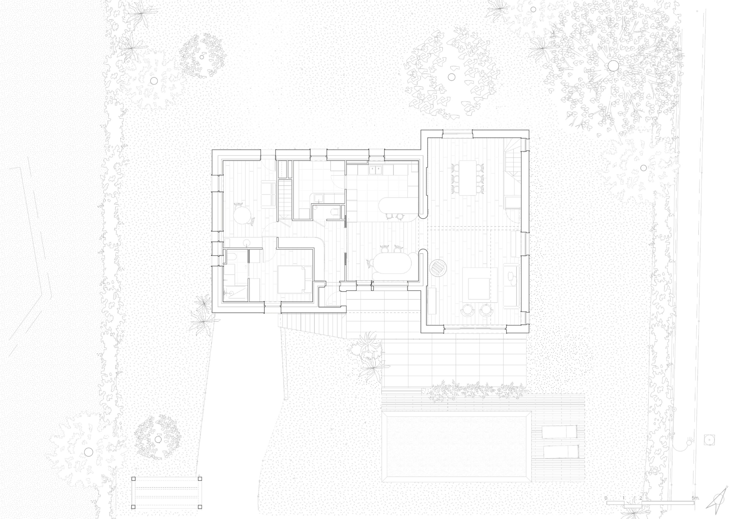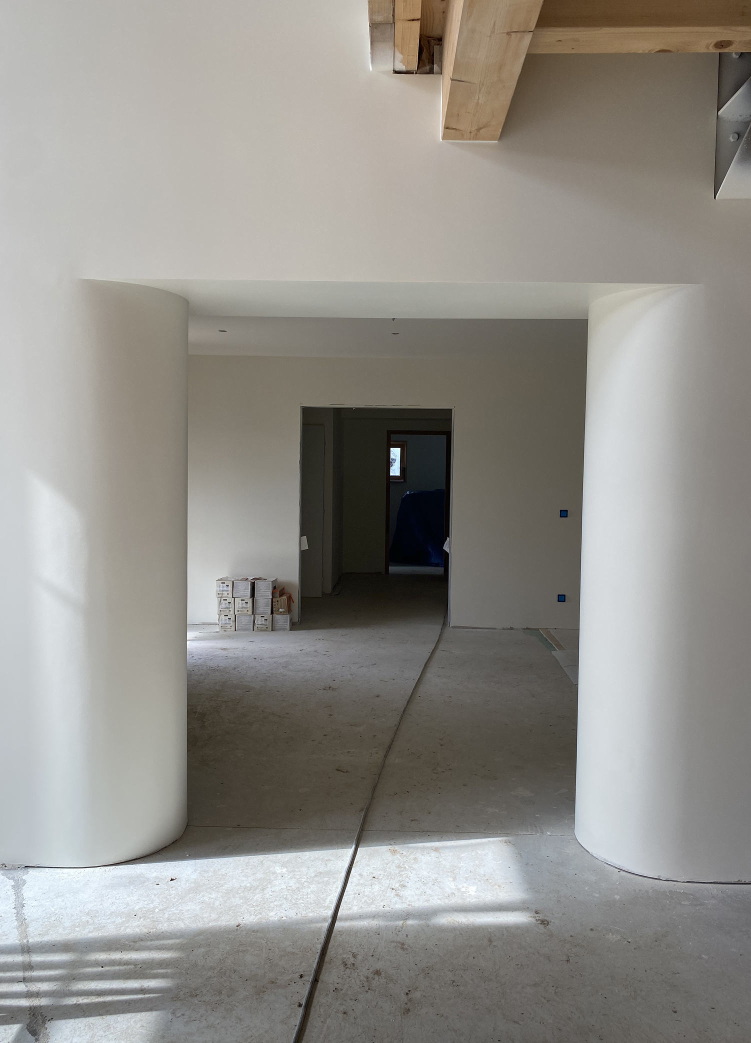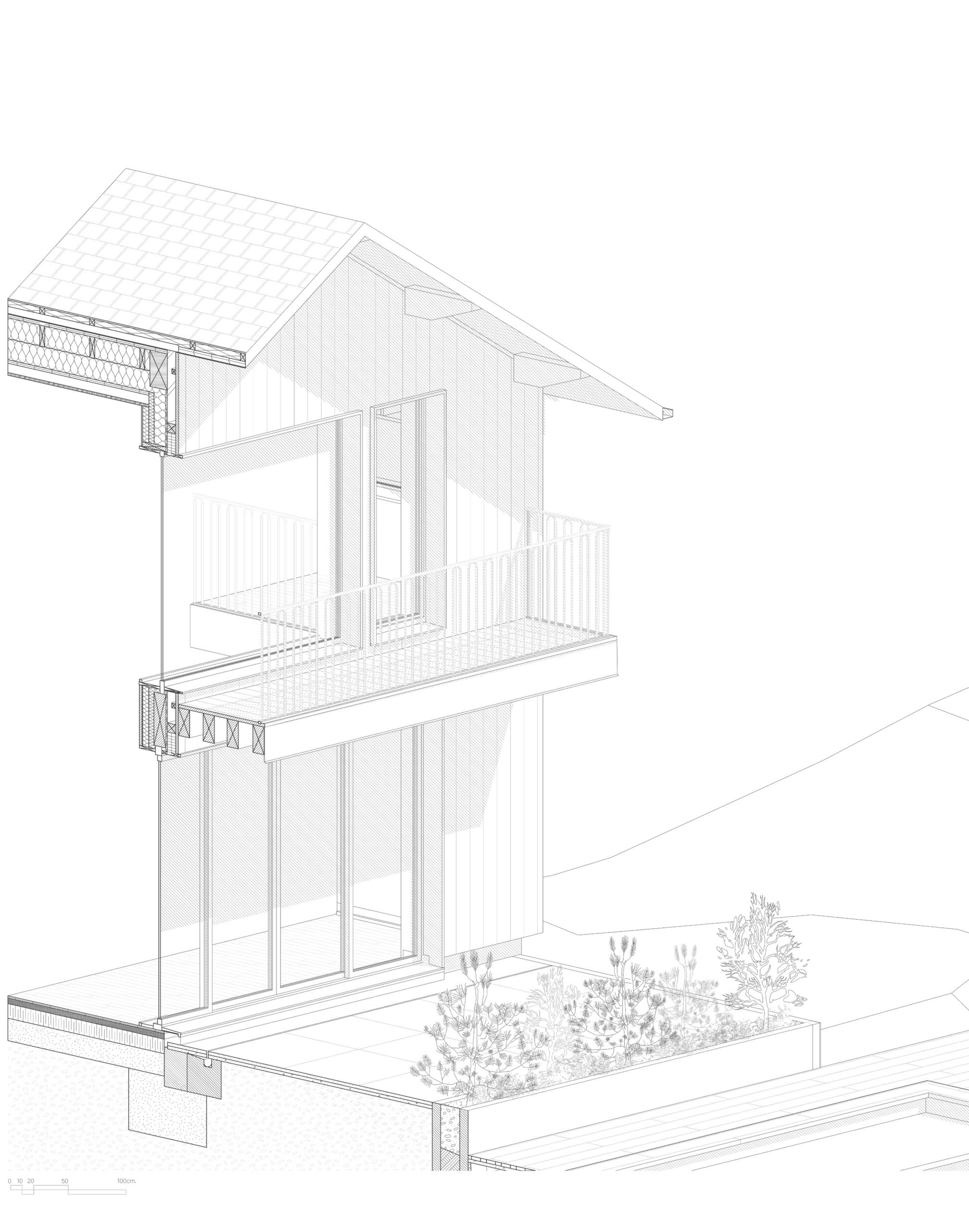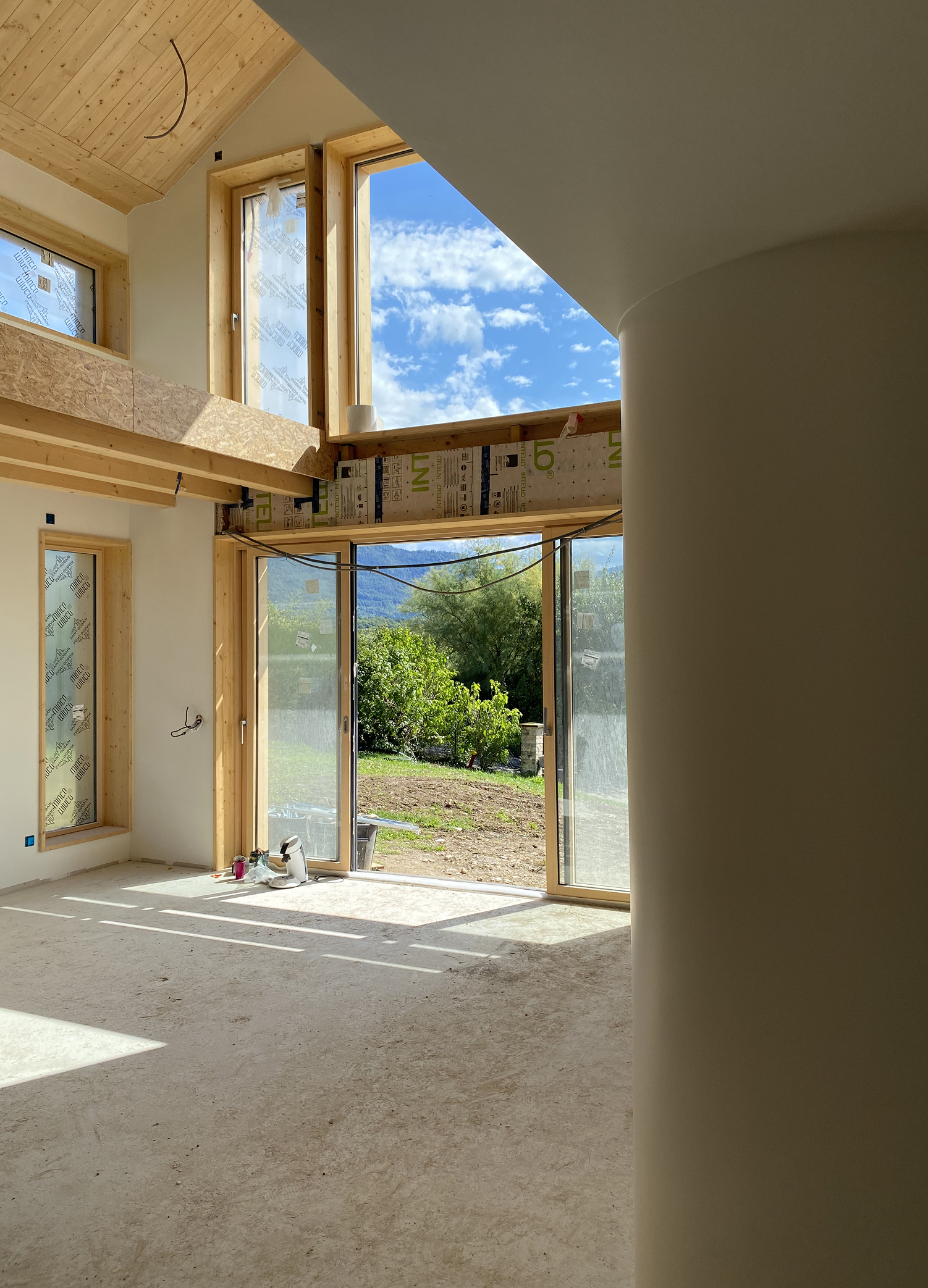 La maison Fruitière est le projet le plus abouti sur lequel je travaille actuellement. Il concentre et relie les notions explorées jusqu’à présent dans une architecture qui est aussi technique que sensible, et où les contraintes structurelles s’adoucissent dans l’expérience vécue. Le projet est à la fois une isolation par l’extérieur, une surélévation et une extension d’une maison pavillonnaire des années 1990, le tout en ossature bois répondant aux critères de la RE2020, et dont le caractère parasismique (zone 4) a du totalement être géré par la nouvelle intervention.